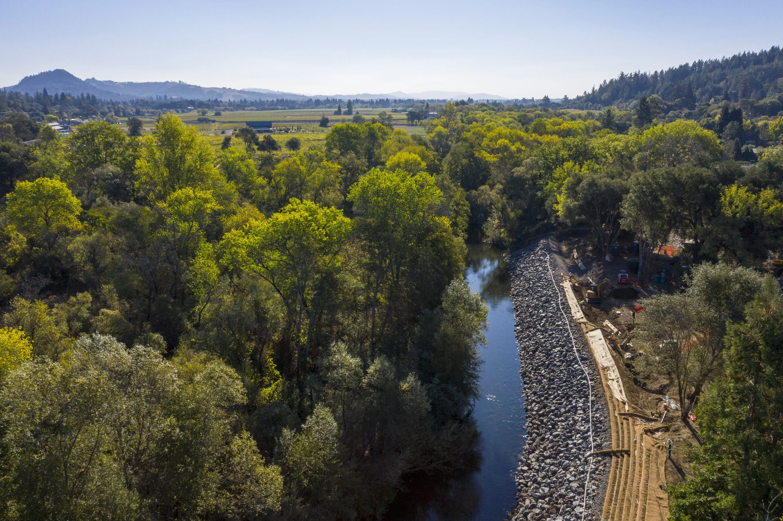 SONOMA COUNTY - Excavation of backwater alcoves and side channels into the floodplain areas, installation of habitat and stabilization structures, driving logs into the ground, stabilization of banks, planting and replanting riparian vegetation and trees, removal of non-native vegetation, construction of in-channel features and replacement of storm drain pipe.