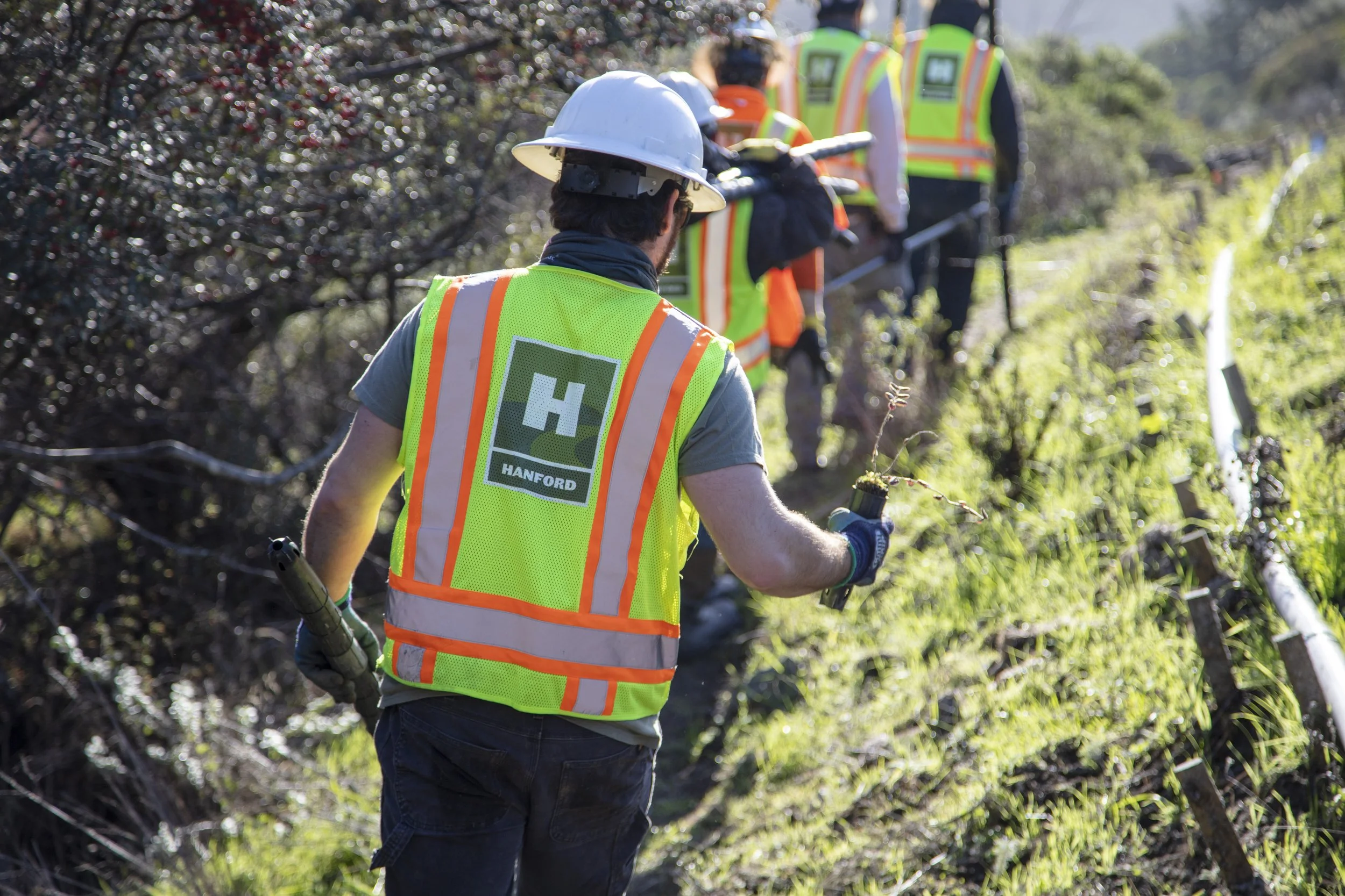 Our crews are skilled in native plant identification, optimal planting elevations, preferred planting techniques, and Phytophthora contamination prevention. Hanford has a great working relationship with reputable native plant nurseries and seed providers, and we work together to ensure quality products are provided to clients.